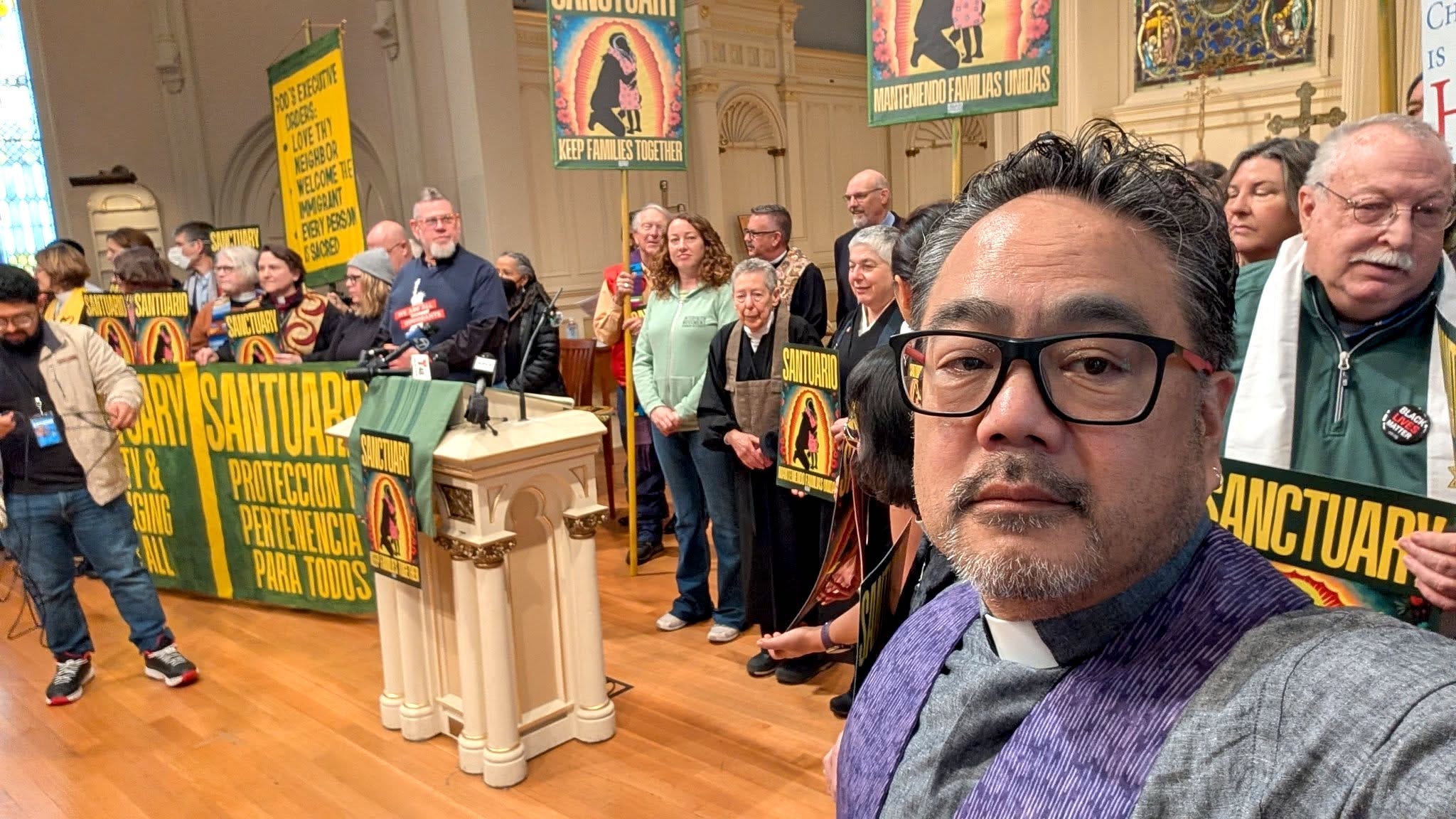 “And so that training is healing. Standing together and walking towards a thing is healing. Praying together is healing. Locking arms is healing. Kneeling before folks. Staring into somebody’s darkened visor without hatred, and truly believing that they have a choice about whether they’re going to follow the orders. And having some fear, certainly, knowing that under this administration we have no idea what they’re going to do. I think knowing that there are people on both sides of us and that we’re going to watch out for each other—those are healing things.”